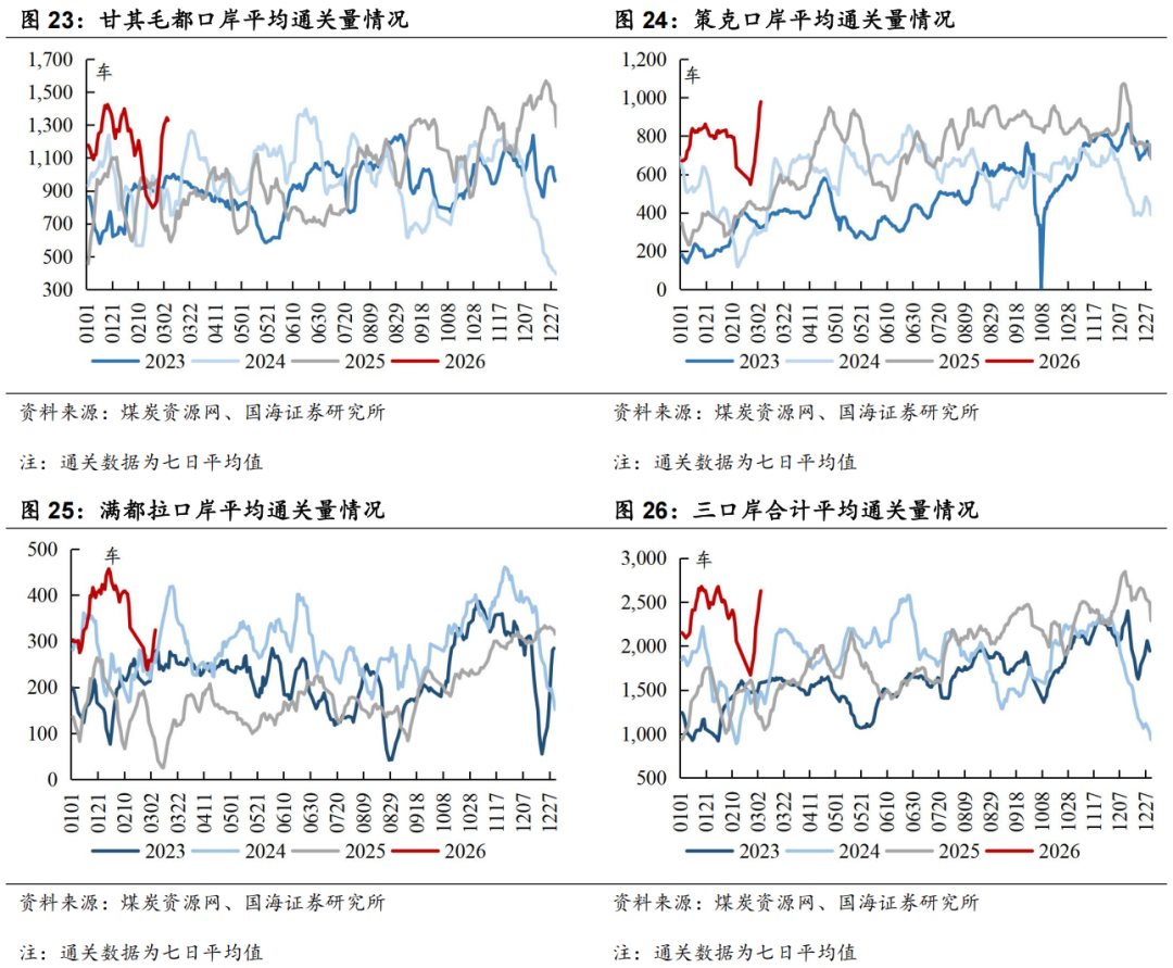 本周甘其毛都口岸平均通关量环比上升:截至3月5日,甘其毛都口岸平均通关量为1328车(七日平均值),周环比上升355车。