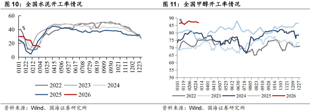 本周全国水泥开工率环比下降:截至3月5日,全国水泥开工率为14.6%,周环比下降1.9pct。