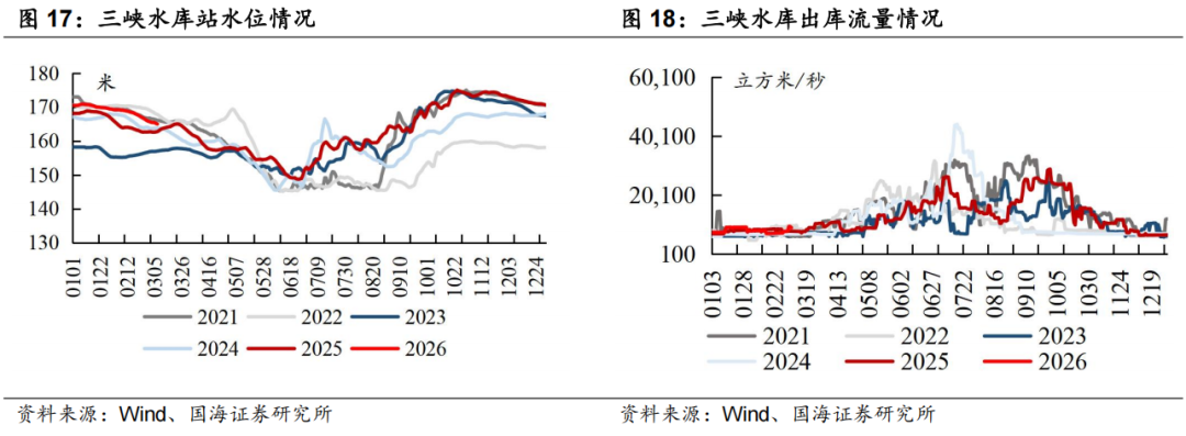 本周三峡水库出库流量环比上涨:截至3月7日,三峡水库出库流量为9060立方米/秒,周环比上涨1860.0立方米/秒,同比上涨15.3%。
